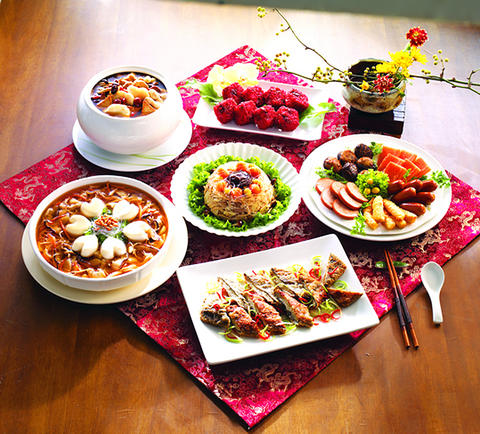 Preparing all of this food entails a good deal of cooking, and few families in urban centers have time to make such elaborate preparations. According to a study commissioned by the President Chain Stores (統一超商), which operates the 7-Eleven convenience store franchise, 75 percent of families in Taiwan now get takeout for New Year's Eve. The company has responded, as has virtually every other convenience store and hypermarket chain, with a huge selection of pre-ordered, pre-cooked and pre-packaged banquets. Restaurants, too, are currently accepting bookings and takeout orders for New Year's Eve foods and if you are looking to celebrate in traditional style without the hassle of cooking yourself, you should probably start getting your orders in now.