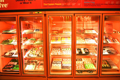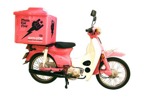 Even in Ximending (西門町), where the progenitors of youth culture busy themselves finding fresh modes of expression, Pizza Cut Five (PCF) is something of a curiosity. The clothing company is disguised as a pizza joint, complete with peach refrigerated cabinets, piles of pizza boxes and a pink delivery scooter called A-fu (阿福)