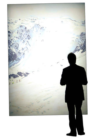 But the memories - not necessarily his own in the first place, and chosen with exceptional instinct for the universal - are obscured, overlaid, blended, corroded, lost and found again, quite altered, in the paint. You can see that happening, both literally and metaphorically, as figures on a shoreline darken into shadows behind flurries of snow accumulating on the canvas like aerosol graffiti, or in a vast diptych showing hundreds of skiers on the slopes. The people are melting into the snow, itself deliquescing into a pink twilight as if the sky had overwhelmed the earth below.