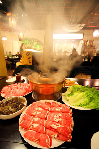 There is the usual selection of thinly sliced pork, beef and mutton, ranging in price from pork shoulder (NT$250) to top-quality Angus beef slices (NT$480). The lamb (NT$320), the establishment's signature dish, is so good it might even be acceptable to those not partial to the meat. These are not shavings off a frozen block, but nicely sliced premium cuts presented to show off their marbling.