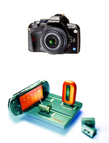 The Idapt is a flat charger with one power cable and three slots that can hold various charging tips. To charge phones or MP3 players, you simply place the proper tip into the Idapt and connect the device. There are tips available for the iPod, Nokia phones and Nintendo DS Lite, among others. There is also a mini-USB charger that should work with almost any phone or MP3 player.