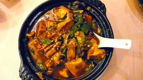 Unlike fu kuei shuang fang, which was concocted for national banquets, Peng’s bean curd (彭家豆腐, NT$240) is a meal that the master created for his own lunch. Stewed with fermented soybeans, garlic and pork, the simple dish eloquently exemplifies the typical Hunan taste that is salty and spicy.