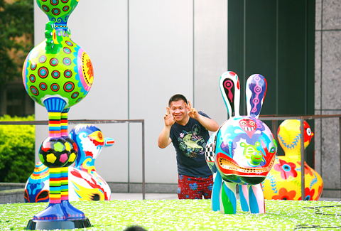 A colossal image of Dongguri, a cheery childlike character created by South Korean artist Kwon Ki-soo (see story above), that adorns Fubon Financial Center’s (富邦金融中心) glass facade encapsulates the festival’s ethos: contemporary art should be fun and should put a big smile on people’s faces.