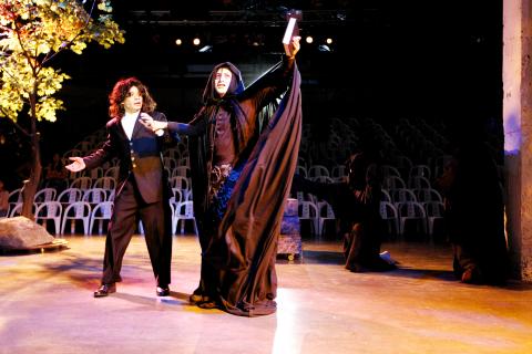 During an interview with the Taipei Times, Wu sat on a low, white plastic stool in the cavernous space of the East Second Hall (東二館) of Huashan 1914 Creative Park (華山1914). Wearing a massive black cape and pallid makeup, he resembled a dressed-down Phantom of the Opera. And the similarities with Andrew Lloyd Webber do not end there — Run, Chekov resembles a modern musical far more than it does even the most adventurous Chinese opera-oriented compositions in Contemporary Legend’s repertoire.