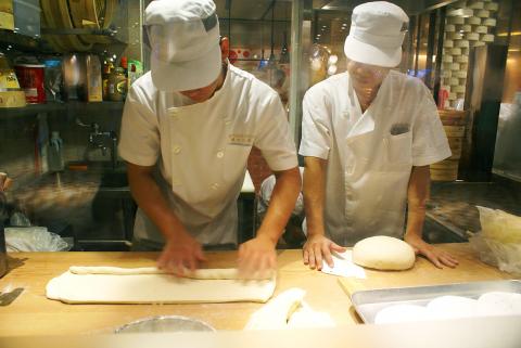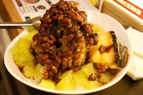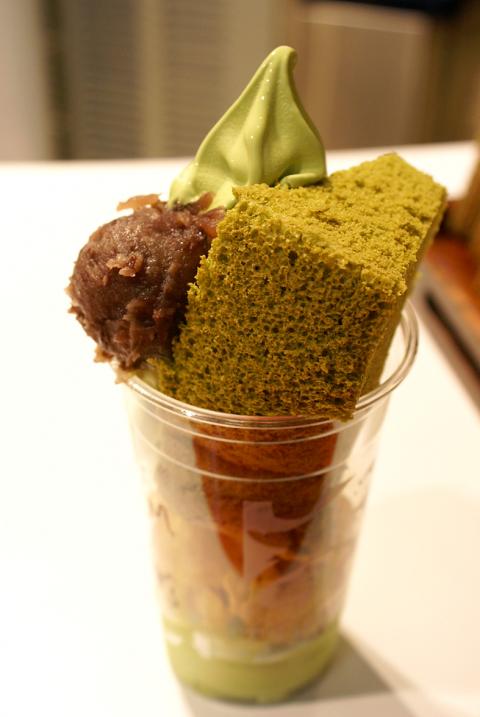 The chiffon cake and soft ice cream parfait (NT$170), topped with a scoop of mashed red bean, was a triumph of taste and texture. The soft ice cream mixed nicely with the mashed potato texture of the beans and the spongelike cake, while the sweetness of the ice cream and slight bitterness of the green tea were a surprisingly tasty combination. After a few bites the long lines didn’t seem so insane.