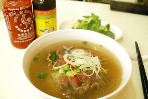 Yue Yuan (越苑) has gained a kind of cult following for its beef pho, or Vietnamese beef noodle soup, and bahn mi, or baguette sandwiches, since opening its first location off Dunhua North Road (敦化北路) and a second location between The Diner and Carnegie’s. The rare steak pho (NT$140/NT$170) consists of a nest of rice noodles topped with slices of rare lean beef and shaved onion. Served with fresh basil, bean sprouts, lime, cilantro and sliced chili peppers, which arrive on a separate plate, the combination of the robust beef broth and sweet, sour and spicy accompaniments results in a complex and satisfying flavor. Equally gratifying is the chicken baguette sandwich (NT$120, beef and pork versions are also available). Generous portions of grilled chicken are nestled inside the warm crusty baguette. Sprigs of cilantro enliven an already delicious combination of julienned pickled carrot and radish and just the right amount of mayo and cracked pepper. Netizens are going nuts over this hoagie and after one bite you’ll understand why.