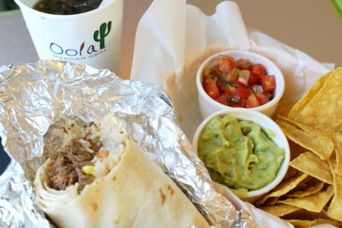 When I first reviewed Oola Mexican Grill, located close to Gongguan MRT Station (公館捷運站) Exit 1, I wrote that the restaurant’s belly-busting portions of tasty, fresh and inexpensive food might become habit forming. It did. Since then, not a month goes by that I don’t find myself at Oola gobbling up a burrito or tucking into a taco. Ordering at Oola is easy: First choose from a list of Mexican standards (burrito, fajita, burrito bowl, tacos or salad), then pick your protein (chicken (NT$130), steak (NT$150), carnitas (NT$130) or barbacoa (NT$135)). A vegetarian option is available.