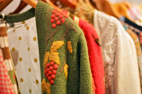 Blah Blah Blah also carries a colorful assortment of vintage clothing from Japan and Taiwan and a treasure trove of quirky items: ABC practice notebooks from Hong Kong, elaborately beaded bags from the 1950s and 1960s, handmade zines by artist Son (兒子) and colorful rubber toys shaped like letters and numbers that Chen found at the Fuhe Bridge Flea Market (福和橋跳蚤市場).