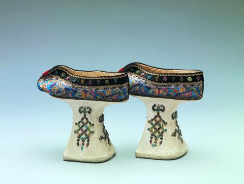 The displays include the accessories worn by these women — the kind of flourishes that ensured they were presentable to the emperor. Enameled hand mirrors, cosmetics boxes inlaid with lapis lazuli, silk fans and shoes and jewelry made from emerald hint that these “ladies” were bestowed with one purpose: to serve the emperor and produce his descendents.