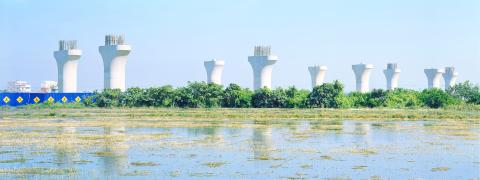 But for the most part, Taiwan’s changing landscapes and cityscapes serve as the exhibit’s focal point. At first glance, Chung Shun-lung’s (鍾順龍) pictures of concrete columns (the kind used to construct freeways) look like drab photos taken by an engineer. Twenty minutes later, however, our party of three was still discussing the images’ techniques and topography.