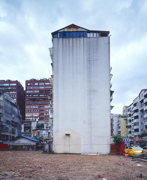 Taiwan’s ongoing development is similarly addressed by Chang Hsiao-chen (張小成). His images capture the manner in which a torn down structure imprints itself on the facade of other buildings that remain standing: the muddy silhouette of a small shack or the exposed brick outline of a demolished building. For Chang Hsiao-chen, the walls of a standing building serve as a metaphor for a headstone, the imprint its epitaph.
