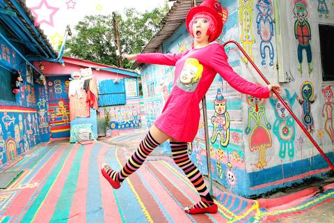 Every section comes with an artist statement, succinct in style, as a guide for the viewer. Take Sim Chang (張哲榕): He uses “the power of pink to turn this world into an amusement park full of happiness and joy.” He’s not kidding. These cutesy photographs, many shot at theme parks, depict a doll-like woman dressed in a garish pink skirt and yellow rubber boots. Think waipai (outside photography, 外拍), popularized during the Japanese colonial era and revised over the past five years as amateur photographers and would-be models hit Taiwan’s most scenic locations.