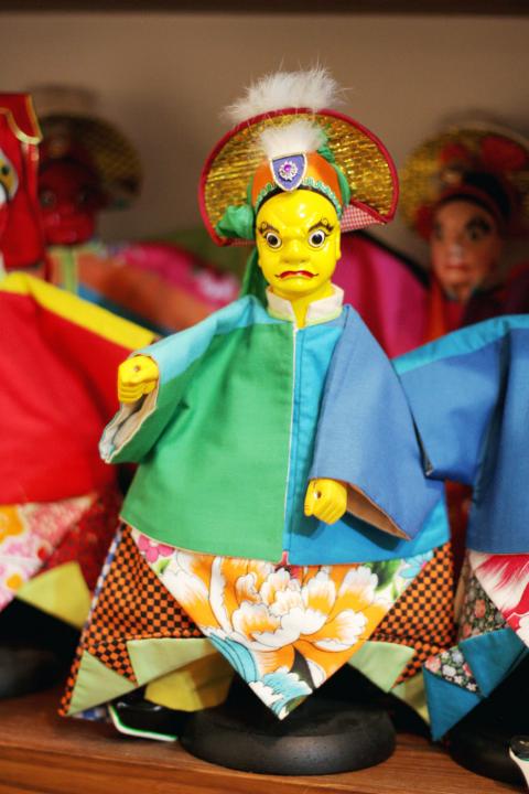 Seeing the small, intricately made budaixi puppets was a revelation, Chen Tsung-ping says. While growing up in Yunlin County she had watched “golden light” (金光) puppet shows, which feature medium-sized puppets, at temple fairs. She was also familiar with puppet television shows like the popular Pili (霹靂) series, but Chen Tsung-ping says she had never seen traditional handmade glove puppets and didn’t even know they were part of Taiwanese culture.