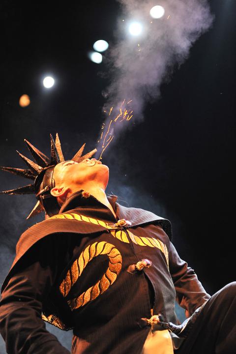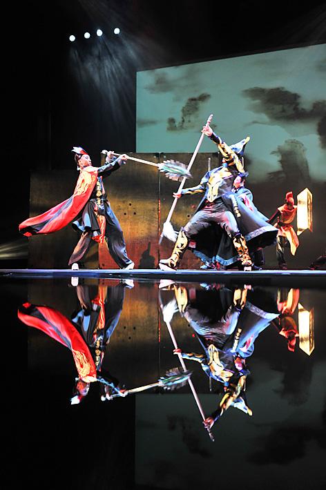 The success of the production in 2007 led to financial support from the Hong Kong Arts Festival to produce a sequel. (108 Heroes had originally been envisaged as a trilogy, but given the costs of such a big production, no timeline had been drawn up.) 108 Heroes II — The Hall of Righteousness (水滸108II︰忠義堂) premiered in Hong Kong in March to considerable critical acclaim, and will open in Taipei on Thursday for four shows. The same creative team led by Contemporary Legend’s founder Wu Hsing-kuo (吳興國), including contemporary novelist and literary figure Chang Ta-chun (張大春), who wrote the script, and pop idol and composer Emil Chow (周華健), who has provided songs and music, are set to burnish this second installment of 108 Heroes to an even brighter contemporary gloss than the first.