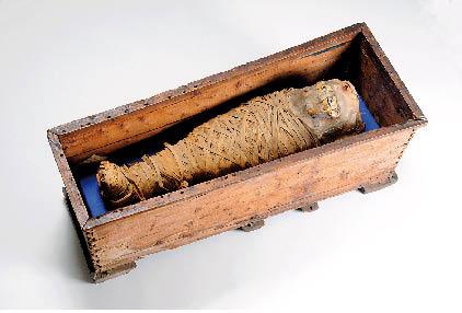 Of course, given the title of the show, there is a significant emphasis on the pharonic infatuation with death and the afterlife, including some spectacular items of funerary kit. The highlights of the show include a number of well-preserved mummies. Some are still wrapped in their linen shrouds, but others, of macabre interest, are free from their bandages and visible in all their unadorned humanity. A Ramesside mummy dated to the 19th Dynasty (1295 BC to 1186 BC) is a remarkable object, both to look at and to learn about. The blackened figure is now thought to be a son of the powerful pharaoh Ramesses II, having been identified as such in 2008 after spending nearly 80 years as part of Bolton Museum’s permanent collection, believed to be nothing more than the preserved body of a temple dancer. Another highlight is the full-scale reconstruction of the burial chamber of the tomb of Thutmose III, which provides a hint of the dark, dank underground spaces covered in mystic symbols that the preserved corpses of the powerful in ancient Egypt resided in, supposedly for eternity.