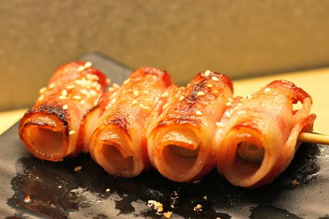 Ma has several options to make sure you get some vegetables in between all the skewers of meat. King oyster mushrooms (杏鮑菇) are best when brushed with rich, creamy butter and very lightly sprinkled with sesame seeds. There are several bacon-wrapped veggies on the a la carte menu. Scallions are the classic variety, but the golden needle mushrooms have a pleasant crunch and soak up the bacon juices very well.