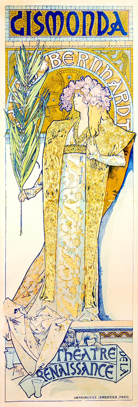 Though there were minor successes, he was generally regarded as a commercial artist, producing magazine drawings and designing costumes for operas. This all changed when his commissioned poster for Gismonda, a play starring the famous actress Sarah Bernhardt, appeared on the streets of Paris in 1895.
