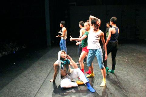 The show was the culmination of a three-week intensive exchange project between the ResCen of Middlesex University, the Beijing Dance Academy (BDA, 北京舞蹈學院) and TNUA, with the ResCen having selected three “emerging choreographers” working in England, BDA sending three established choreographers from its staff and the TNUA organizers selecting four Taiwanese choreographers of varying experience, though two of them — Lai Tsui-shuang (賴翠霜) and Yu Yen-fang (余彥芳) — have done most of their choreographic work abroad. Ten BDA students also took part, along with two dozen or so TNUA students, including a few from Hong Kong, the US and elsewhere who were in Taipei to take summer classes at the school.