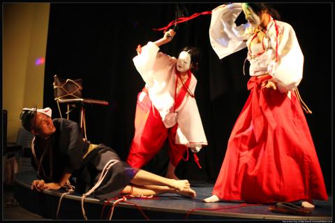 BDSM Company’s productions on Sunday at Nanhai Gallery (南海藝廊) and on Sept. 9 and Sept. 10 at the Comedy Club sold out two weeks ago. If you don’t have tickets, but still want to learn about BDSM, bondage artist Shima Malphas from Japan will perform late tonight and tomorrow (“definitely after 11:30pm,” organizers say) at Show House (秀屋) at 161 Daguan Rd, Greater Taichung (台中市大觀路161號). For more information, call (04) 2251-5888 or visit www.show-house.com.tw.