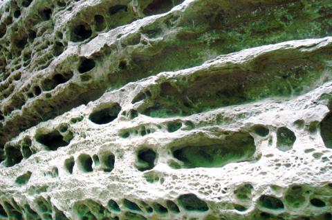 Though smaller, Bat Grotto is even more interesting as its entire surface is riddled with holes and depressions. Up close, the eroded rock resembles a wall of ancient, decaying skulls.