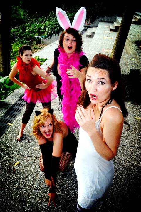 Rock in Hose’s nouveau-burlesque show is evolving. For two upcoming shows, on Oct. 9 and Oct. 16, at Revolver, the group is going cabaret with a performance of new material. The audience, which is limited to 50 people for each performance, will be seated for the group’s original songs, dances and comedic skits. In addition to promoting women’s and gay rights, and orgasms for all, the Hose also advocates safe sex and will donate part of the proceeds from the two shows to charity. The money will go to Spark! Circus, a charity that stages performances and holds workshops for Burmese refugees near Mae Sot at the Thai-Myanmar border. When describing what attendees can expect from Sunday’s shows, Alita Rickards, troupe co-founder and performer as well as Taipei Times contributing reporter, said: “A visual and auditory feast that will tickle all senses.” Guest acts include a belly dancer, an artist who produces erotic paintings to live music and Moshe Foster (front man of reggae band High Tide), who will debut a new song titled Undercover. The group was founded in 2009 when Rickards and Anja Whitehead joined forces with Kathleen Batchelor, Marika McTague and Tinus Stander.