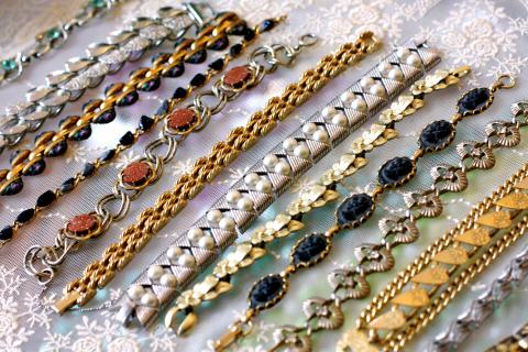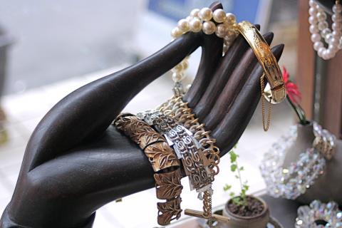 Vintage Trade (古飾洋行) owner Tiffany Chen (陳怡安) has lost count of how many pieces of antique and vintage jewelry she has collected since she was a teenager, but says it is “more than a few thousand.” In 2008, she decided to turn her hobby into a business.