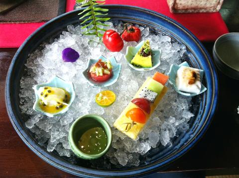 There is no menu at Yangming Spring, which serves eight-course vegetarian meals that rely mainly on fresh, local ingredients. The only choice diners make is whether to spend NT$1,000 per person for the basic set or NT$2,000 per person, for which the kitchen uses more expensive ingredients such as imported truffles or rare mushrooms.