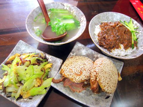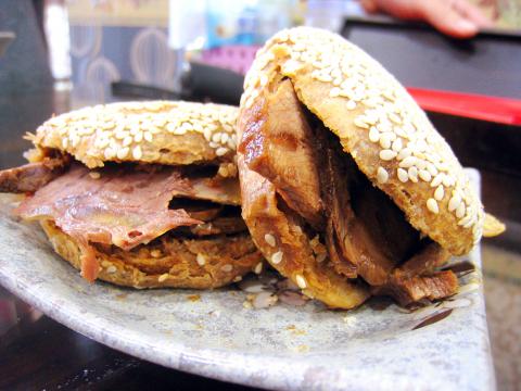 The restaurant has the look of a conventional beef noodle establishment, and it has indeed added this Taiwan staple to its menu (NT$120). But the highlight of a meal at Uncle Ma’s remains its shaobing. It first needs to be pointed out that these shaobing, while a distant relative to the familiar variety available at traditional soy milk breakfast shops, are quite different in both taste and texture. Uncle Ma’s version is a heavy disk of pastry that has been layered with a rich sesame seed paste, which gives the shaobing a distinctly earthy flavor suffused with aromatic high notes.