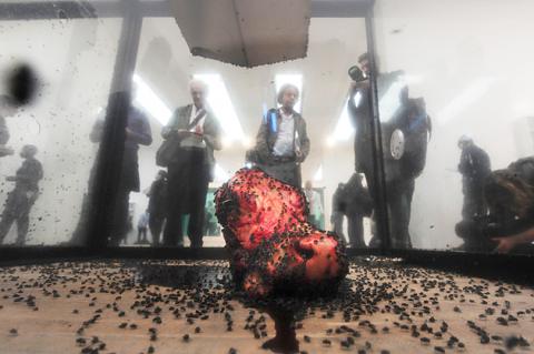 It shares some of the themes with A Thousand Years from 1990 in which maggots hatch inside a glass vitrine, develop into flies, feed on the severed head of a cow and meet their end on an “insect-o-cutor.”
