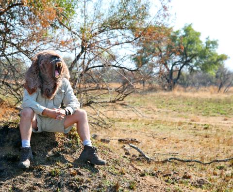 In other episodes, the scientific rigor seems more an absurd pretext to bother the animals. In “operation hippo stakeout” he convinces a taxidermist to build him a hippo costume, partially made from Kevlar body armor. He then brings the large contraption to Zambia’s South Luangwa National Park, covers it with dung and waits for hippos to wander up. The reason? To “unlock the secrets” of hippo sweat, which “some scientists believe … could result in powerful new antibiotics and sun block for humans,” he says. But the scientists are never mentioned and in the seven-minute video I saw, and he fails to get a sample of the coveted sweat.