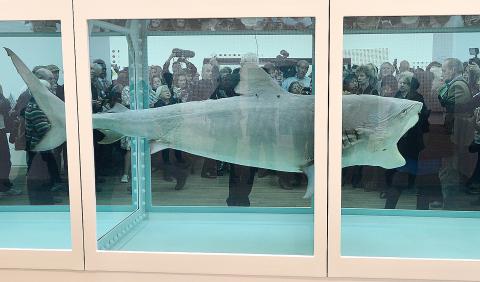 The other creepy work, Hirst’s shark piece, The Physical Impossibility of Death in the Mind of Someone Living required a new shark when it became evident that the old one was definitely not only dead but obviously rotting.