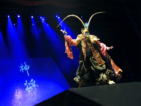 The local culture aspect of the production hits top gear almost immediately with loud electronic music that has now become an inseparable subculture of traditional temple events in the guise of the electric-techno neon gods (電音三太子). The show is introduced by an MC dressed in a neon god costume, the Taiwan-style diction, mixed in with copious quantities of Taiwanese phraseology, lending the show, to Chinese-speakers at least, a strongly local flavor. For others, English and Japanese introductions are provided on big screens to either side of the main stage.