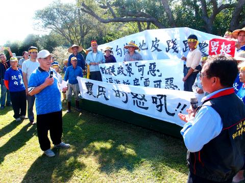 Lu Cheng-sheng (呂正盛), a farmer from Sanchongpu, said only big corporations and corrupt politicians benefit from the deal.
