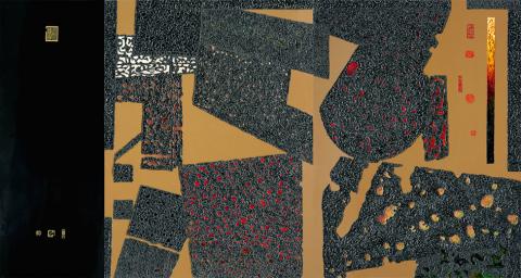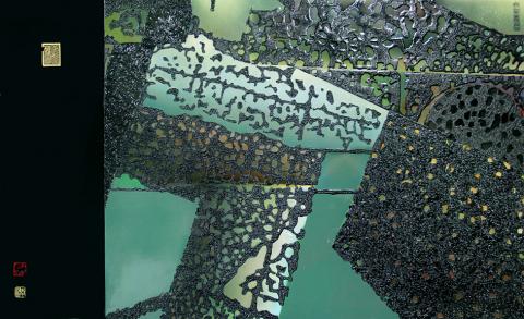 The Chinese Nationalist Party’s (KMT) escape from China in 1949 following the civil war and its subsequent defense alliance with the US had the unintended benefit of introducing Taiwanese artists to the theories and practices of emerging American and European art. Like many young artists of his generation, Lee Hsi-chi (李錫奇) eagerly absorbed these new styles, creating abstract expressionist paintings using lacquer. Yet as his use of materials suggests, Lee didn’t surrender to Western art forms. Rather he combined them with Eastern aesthetics — a fusion that is apparent in Oriental: The Elegance of Han Dynasty (漢采本位), a retrospective exhibition currently on view at MOT/Arts. The title stems from Lee’s close study of Han Dynasty architecture, particularly its forms, symbols and materials. In these paintings, Lee carefully manipulates lines and spatial planes to create depth and distance. The exhibition not only illustrates the maturity of an important Taiwanese artist, but also gives the viewer a sense of the development of modern painting in Taiwan.