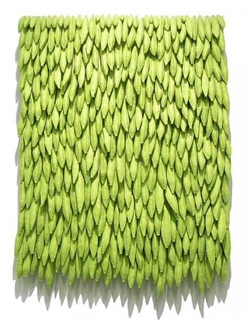 Fungi, sea anemones, seeds and spores are among the natural phenomena Pan Hui-mei (潘惠玫) depict in her solo exhibition Multiply (繁衍). The show brings together 14 of her recent fabric creations, which meditate on biological processes and cellular phenomena, some of which look like they might be experiments in a petri dish or living organisms as seen under a microscope. Pan begins with a shape that she then randomly affixes to the canvas and gradually “multiplies,” as if like growing bacteria.