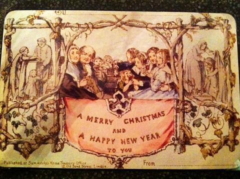 The tradition of exchanging holiday greetings through cards most likely began in London in the 1840s, when Sir Henry Cole hired an artist to design a Christmas card that he could distribute among his friends, according to Sally Chen (陳淑美), head of Taipei Story House’s promotion section.