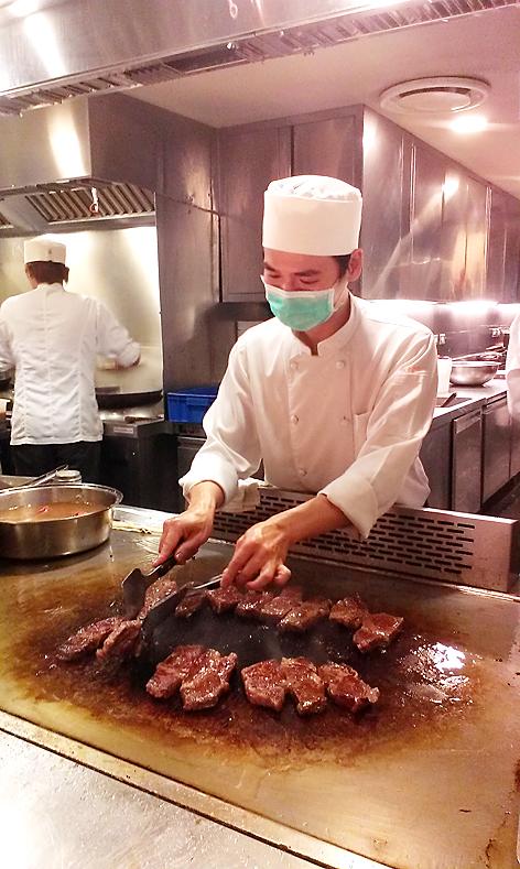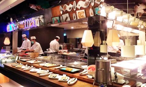 On the serve-it-yourself range, many of the dishes are of a quality you would expect from a meal at a business restaurant. A frying station serves up tempura prawns that are fresh, long and luxuriously battered. The German roast pork knuckle has a nice hard crust that gives way to buttery tenderness, and the baby potatoes are sweet and creamy.