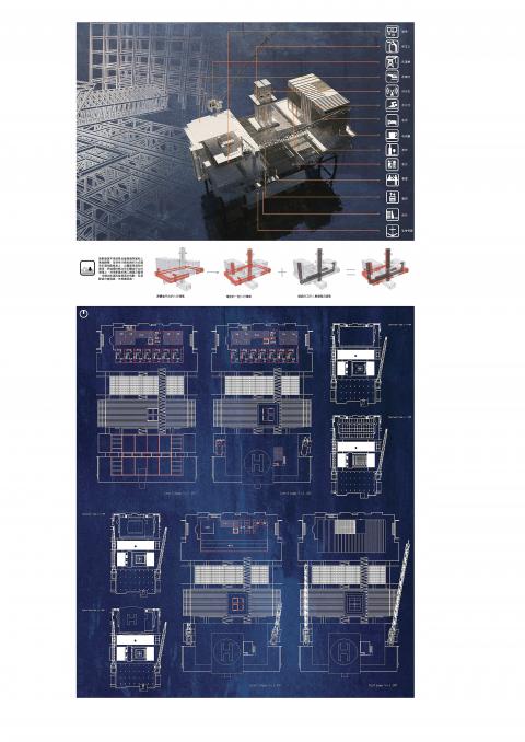 Chou Jing-heng (周敬恆) took a gold medal in the space solutions category with Boundary into the Plan (邊界突入計畫), a scale model based on an abandoned oil drilling platform in the East China Sea. Chou has done major remodeling, which includes knocking out walls and adding a floor with a gambling casino and resort.