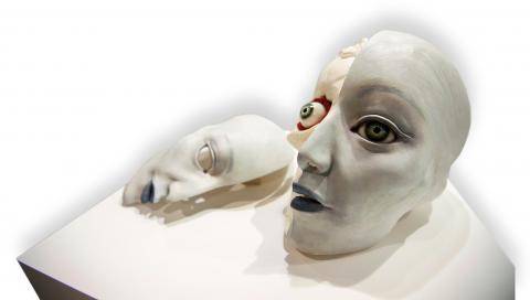Also on display were five works including video and three-dimensional installations using day-to-day items by Lam’s compatriot Tang Kwok-hin (鄧國騫).