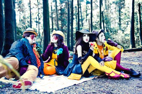 Withered Childhood (凋零的童年) is a solo photography exhibition by Wu Pei-han (吳珮韓), a professional costume designer and make-up artist. The gallery includes nearly 100 works of original costumes, props and makeup design in macabre scenes. In the Playmates (玩伴) series, adults stare into space through bruised eyes, while friends in The Joys of Childhood (童趣) have permanent crimson smiles drawn over a pallor foundation.
