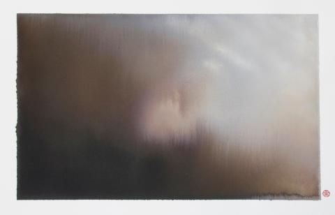 Origins (源) is Annie Hsiao-wen Wang’s (王筱雯) first solo show of oil paintings and ink sketches in Taipei, her birth city. Works of the long-term Australia resident are like a remote moor shown out of focus: They are fog-like spreads of muted colors that reveal no story and no concrete objects. Interested in transcending the materialistic world, Wang uses the language of abstraction to create a silent and perhaps revelatory moment for the viewer.