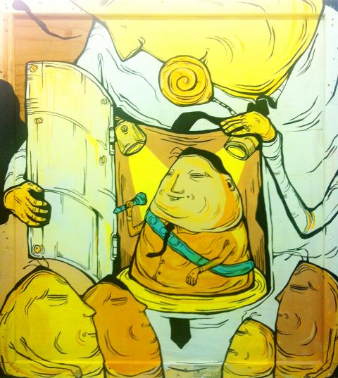 The Grime Casebook (髒兮兮事件簿) features graffiti art by AhdiaOne (阿迪啊萬) and Candy Bird. Their themes cover “dirty” social phenomenon such as forced land development and politicians who are well-dressed but corrupt to the core.