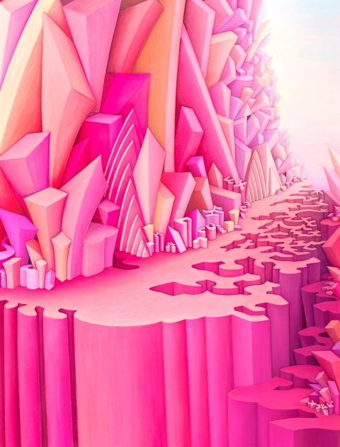 In the solo exhibition Looking for Tao (尋道), Hong Mei-ling (洪美玲) displays paintings she completed between 1983 and 2013. Hong taught primary school for ten years before discovering western-style painting in 1977. She went on to pursue the art in San Francisco, where she encountered personal and professional challenges. The 131 paintings in her Looking for Tao series chronicle her search for a sure footing in California. The barren images are built with symbols and patterns seemingly rich with meaning, or perhaps only with its illusion.