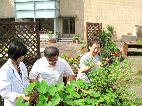 Horticultural therapy is a term for using plants to help a patient reach a treatment goal, said Kuo Fen-ling (郭芬伶), an occupational therapist at Shuang Ho Hospital.