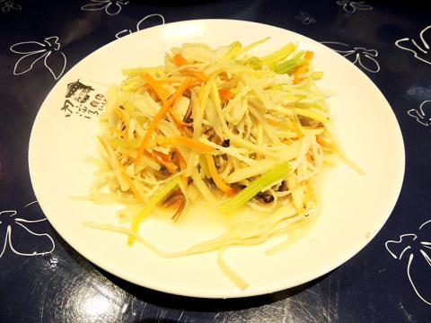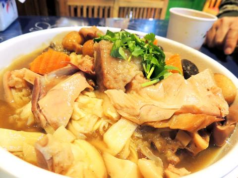Perfection (十全十美, NT$250) is most of the above. It’s an everyday version of Buddha Jumps over the Wall, a Spring Festival dish that often includes top-shelf animal products like abalone and shark fin, and vegetables like ginseng and Japanese flower mushroom. Neiwan Theater’s humbler variant uses bamboo, taro, vermicelli noodles, bits of cured ham and pork tendon, which looks to be the priciest ingredient. Though without grandeur, each component appears to have been prepared the right way — slowly and separately — so that they are equally soft and redolent with oil. The broth is as saltily rich as the shark-fin version, and Perfection still feels like a feast dish.