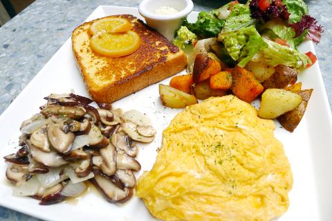 I was treated to a few bites of the cinnamon orange French toast (NT$330). It comes with a slice of orange on top, when I was hoping for more of an orange infused flavor. What I liked was that it’s only one piece so it’s not an overwhelming sweet plate and instead became savory when added with scrambled eggs, a heap of sauteed mushrooms and sweet potato home fries. The brunch portions are exceptionally generous, and also come with a coffee, tea, orange juice or milk.