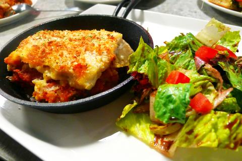 One of two mains is moussaka (NT$310) that, while good, might make a hardcore carnivore miss meat. The bechamel top is nicely crusted after baking and since it was predominately vegetables, it was rather light for being such a large dish. But the best bites I had came from my dining companion’s homemade gluten-free sweet potato gnocchi (NT$320), which can be made with a pasta sauce of your liking. Those few bites made me have major food envy because the gnocchi was sweet, light and a bit fluffy — not at all dense and doughy.