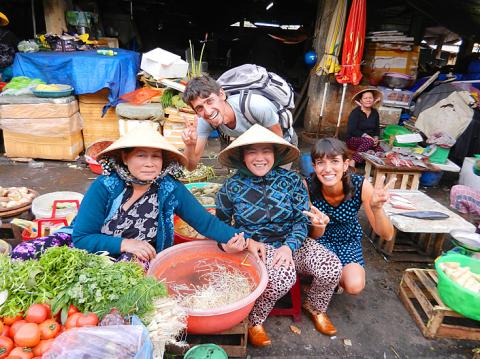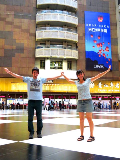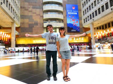 Elias and Caldaroni, college sweethearts who met in Argentina, plan to explore Taipei on foot until the middle of next month and then embark on two months of hitchhiking across Taiwan.