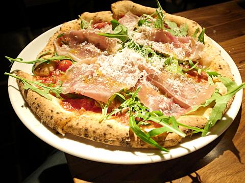 We also tried both the prosciutto and rucola (NT$750), topped with tomato sauce, buffalo mozzarella, smoked cheese, prosciutto ham, rocket greens and Parmesan, and bismark (NT$600), which comes with bacon, ham, spinach, mushrooms, semi-cooked egg and buffalo mozzarella. Both were good, but had the same problem of the soggy crust.