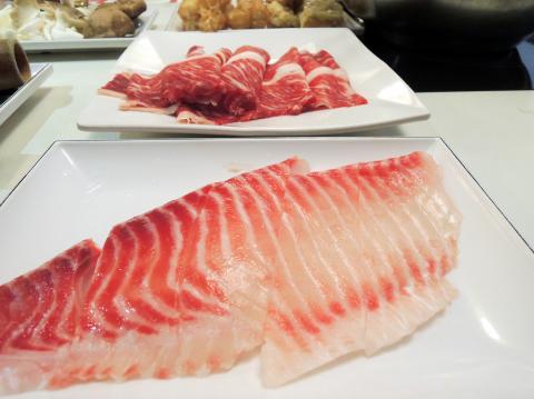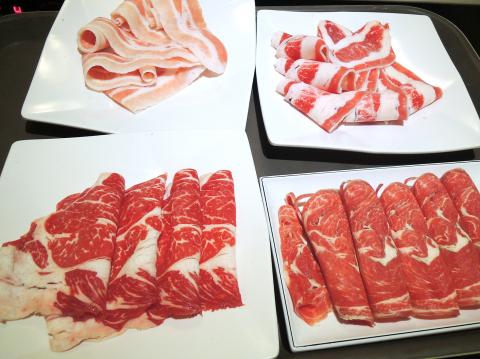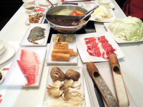 Man Tang Hung is different from the typical all-you-can-eat hot pot restaurants — you don’t choose ingredients from an open refrigerator. Instead, the staff brings the dishes to your table as you order. As Taiwan’s only all-you-can-eat hot pot restaurant with a Platinum US Beef certification developed by the US Meat Export Federation, the restaurant is certainly proud of its beef. It offers four parts of US Prime or Choice beef, and high-quality pork, lamb and chicken. The costly US boneless short ribs were not available for lunch during weekdays, so we ordered the other three parts of beef instead. The thickly-sliced beef quickly turned pink after being dunked in the boiling soup for 30 seconds and it was tender and flavorsome after absorbing the broth.